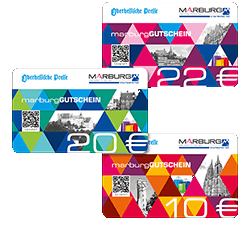 Ab April 2020 kann man bei unseren Veranstaltungen in Marburg auch den "Marburg-Gutschein" einlösen. Den "Marburg-Gutschein" könnt ihr bei zahlreichen Verkaufsstellen in Marburg erwerben und bei noch zahlreicheren Marburger Geschäften und Unternehmen einlösen (Ausführliche Liste von Verkaufs- und Annahmestellen auf der o.g. Website.) Er eignet sich also wunderbar als Geschenk. Erhältlich in Höhe von 10 € und 20 €, und als "Arbeitgeber-Gutschein" in Höhe von 22 €.